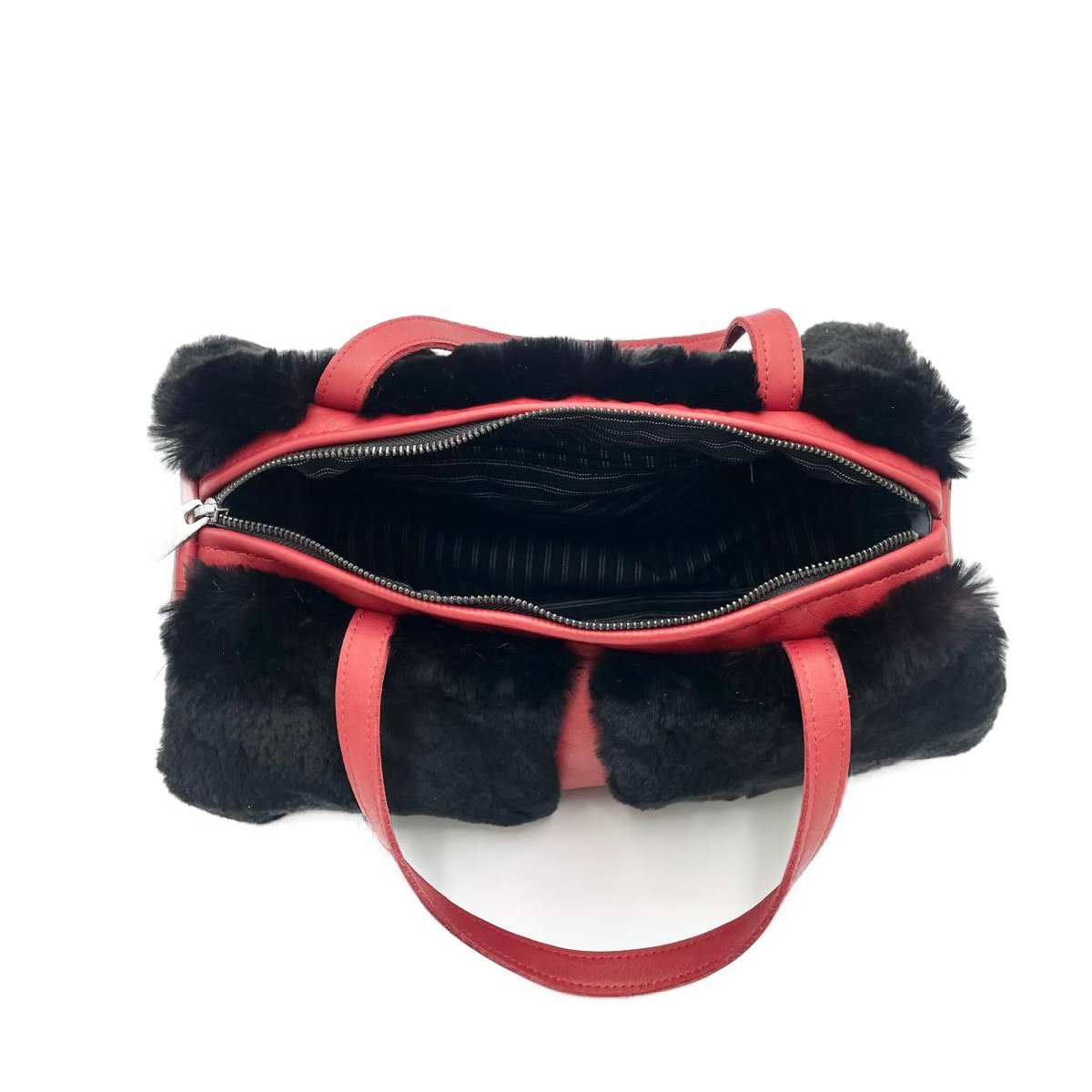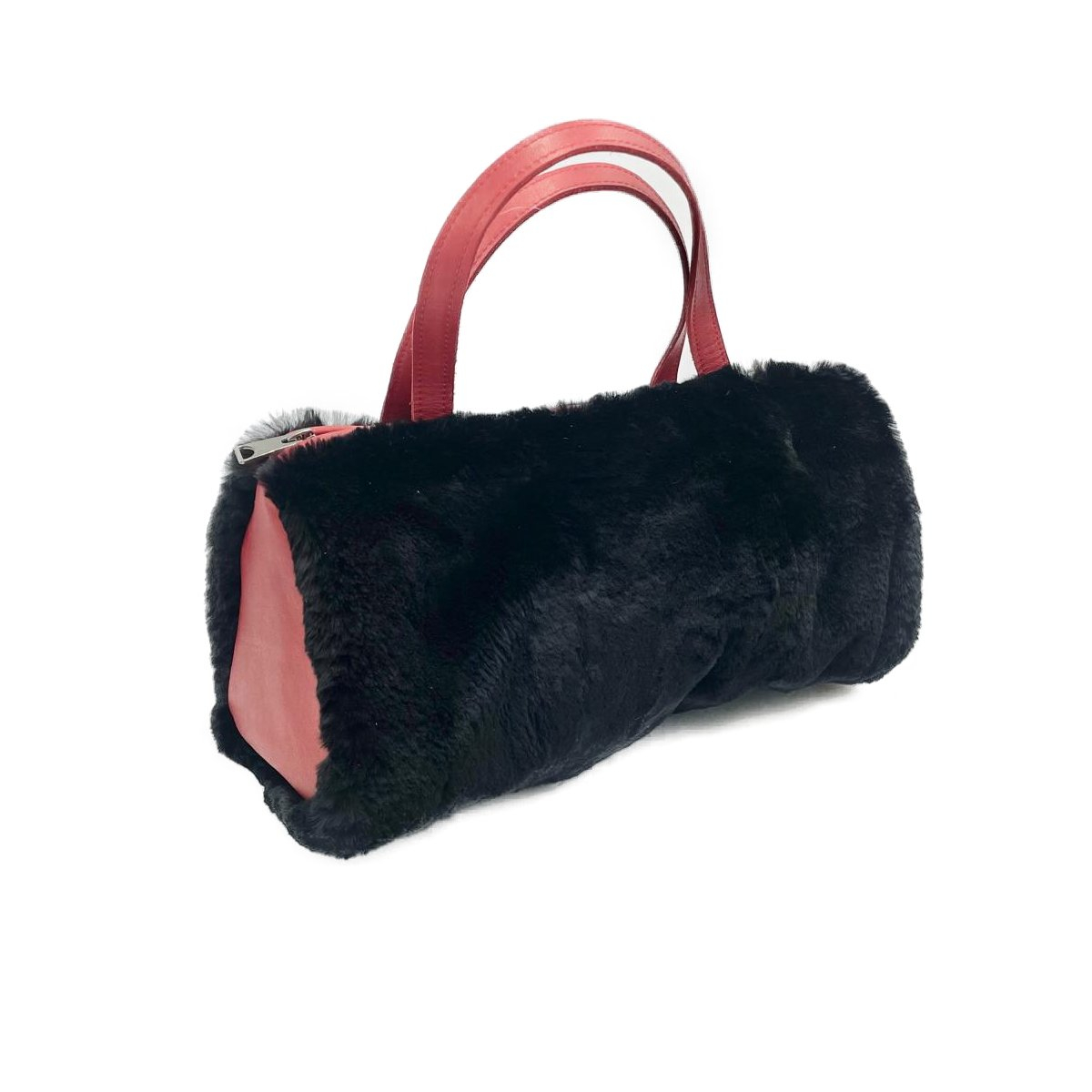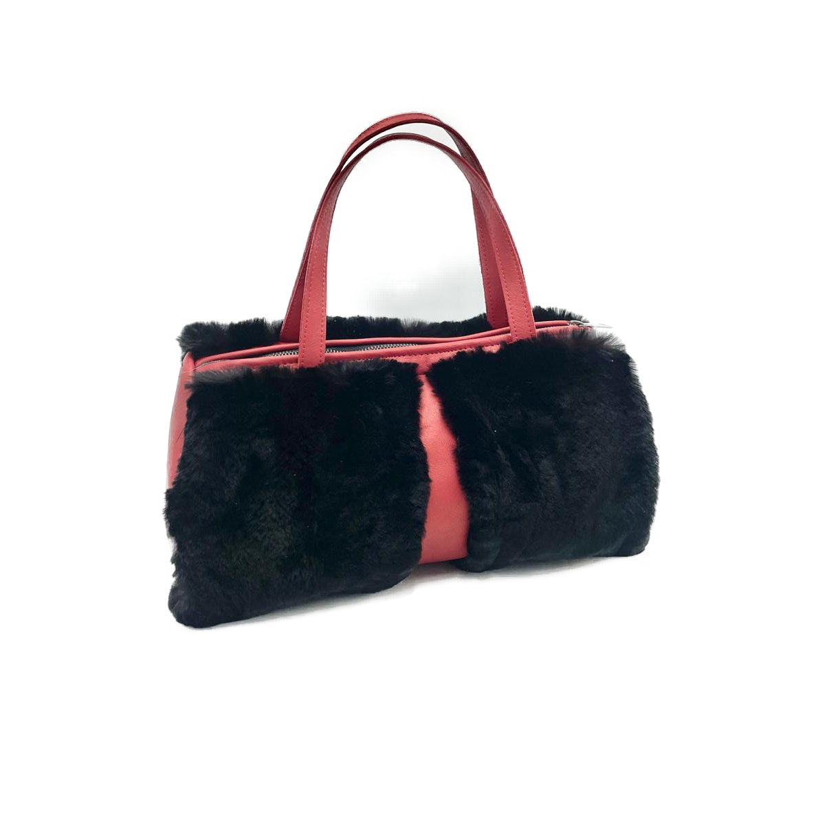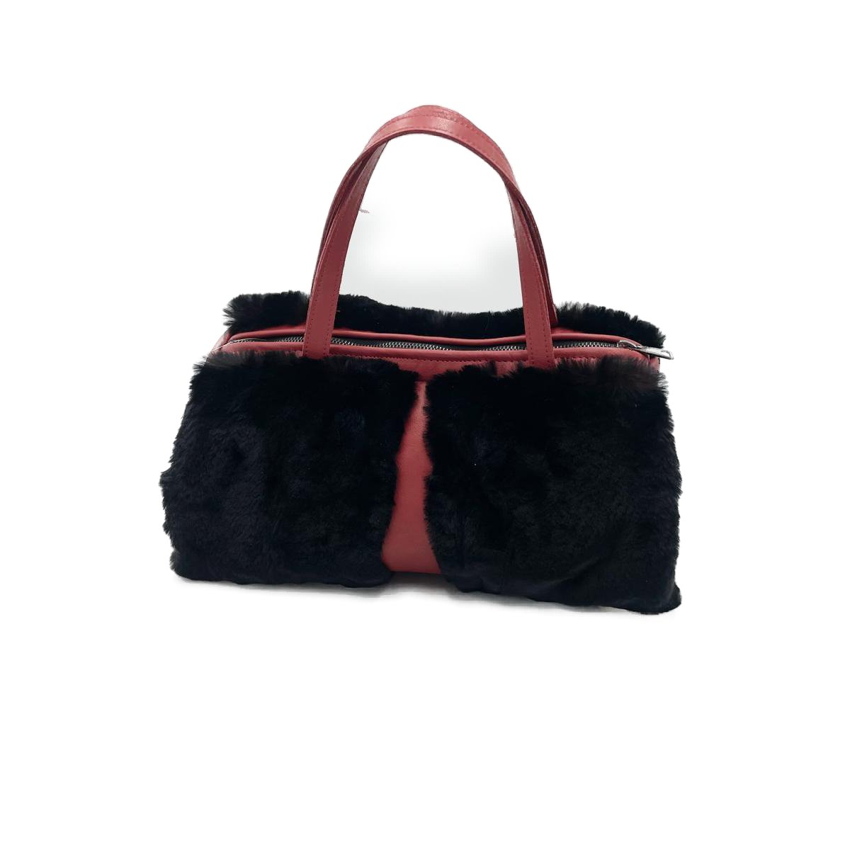 Poseta din blana naturala, Negru, Rosu 35x20x15cm