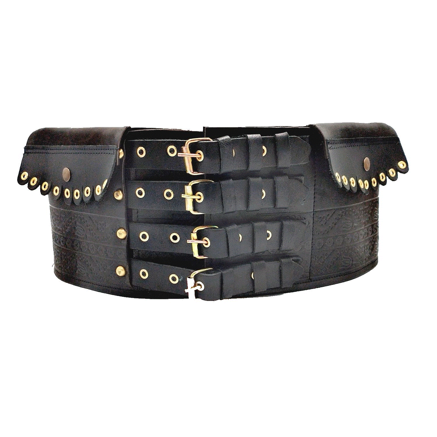 Chimir, Serpar traditional din piele naturala, potrivit pentru costume populare, port popular, negru, 102x18 cm, 4 catarame, 2 buzunare stanga - dreapta.